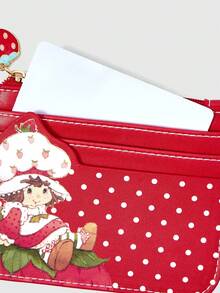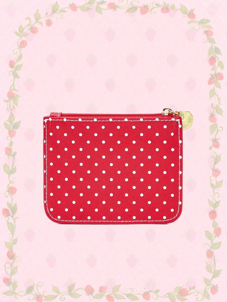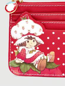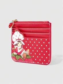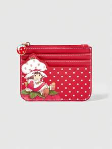 Monedero con cremallera y llavero con soporte para tarjeta de autobús con diseño de patrón de fresa de dibujos animados