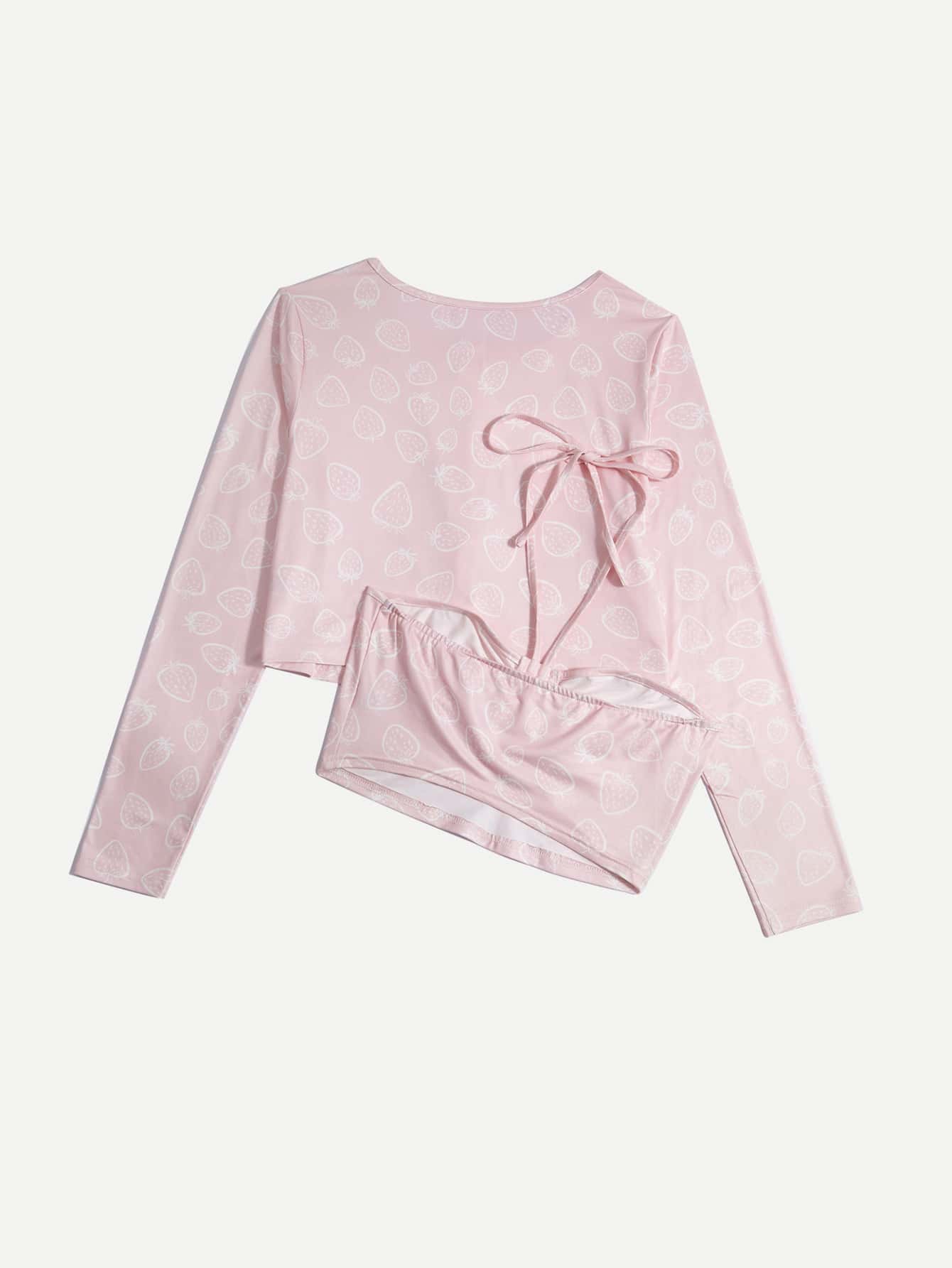 con estampado de fresa con botón delantero Camiseta & Top halter