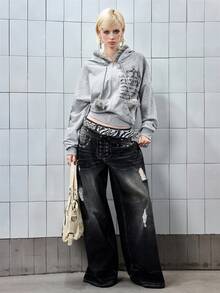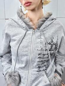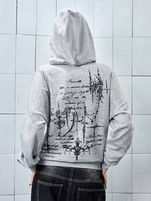 Sudadera con capucha para mujer con estampado de cruz de teñido anudado futurista Y2K Y3K, estilo vintage y chic de calle con bolsillo con cremallera