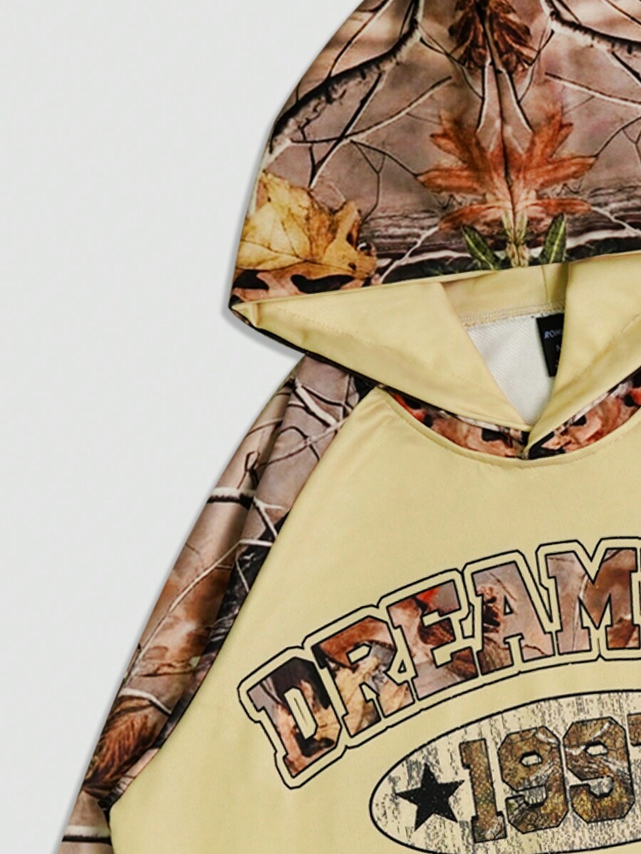 Street Life 1 pieza Sudadera con capucha con bolsillo tipo canguro y estampado de letra de Japón de manga larga