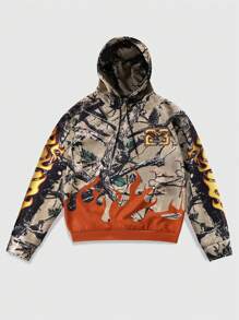 Street Life 1 pieza Sudadera con capucha de manga larga con estampado completo para hombre, uso diario casual