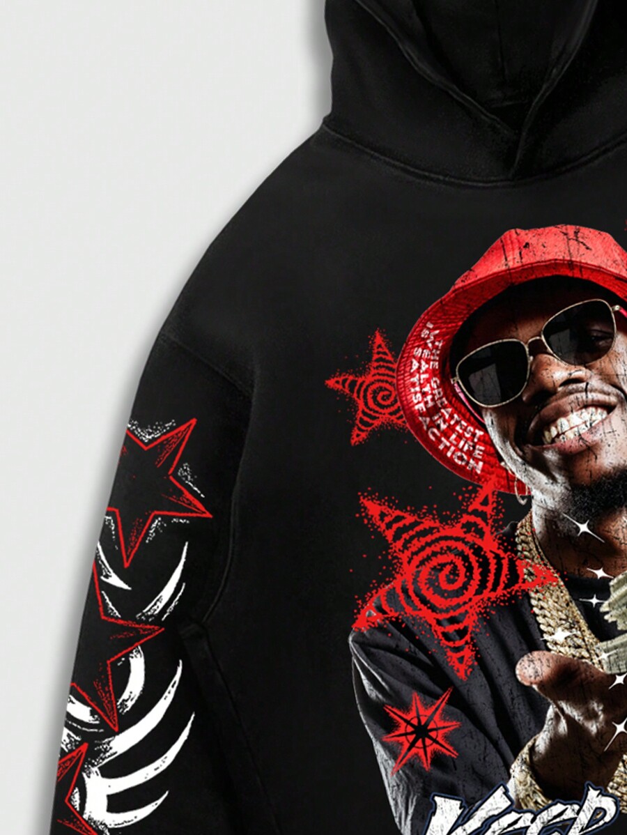 Street Life 2 piezas Conjunto de sudadera y pantalón de chándal con estampado gráfico de calle para hombres, adecuado para primavera y verano