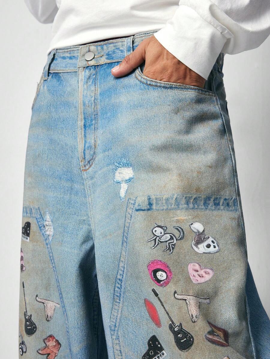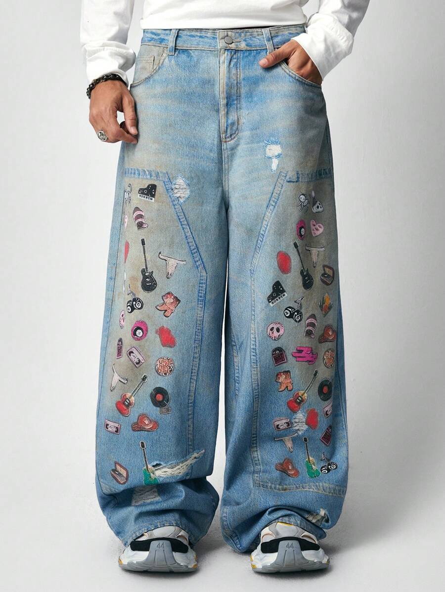 Street Life Pantalones vaqueros de bolsillo con estampado casuales para hombres, uso diario