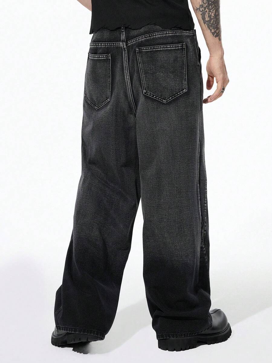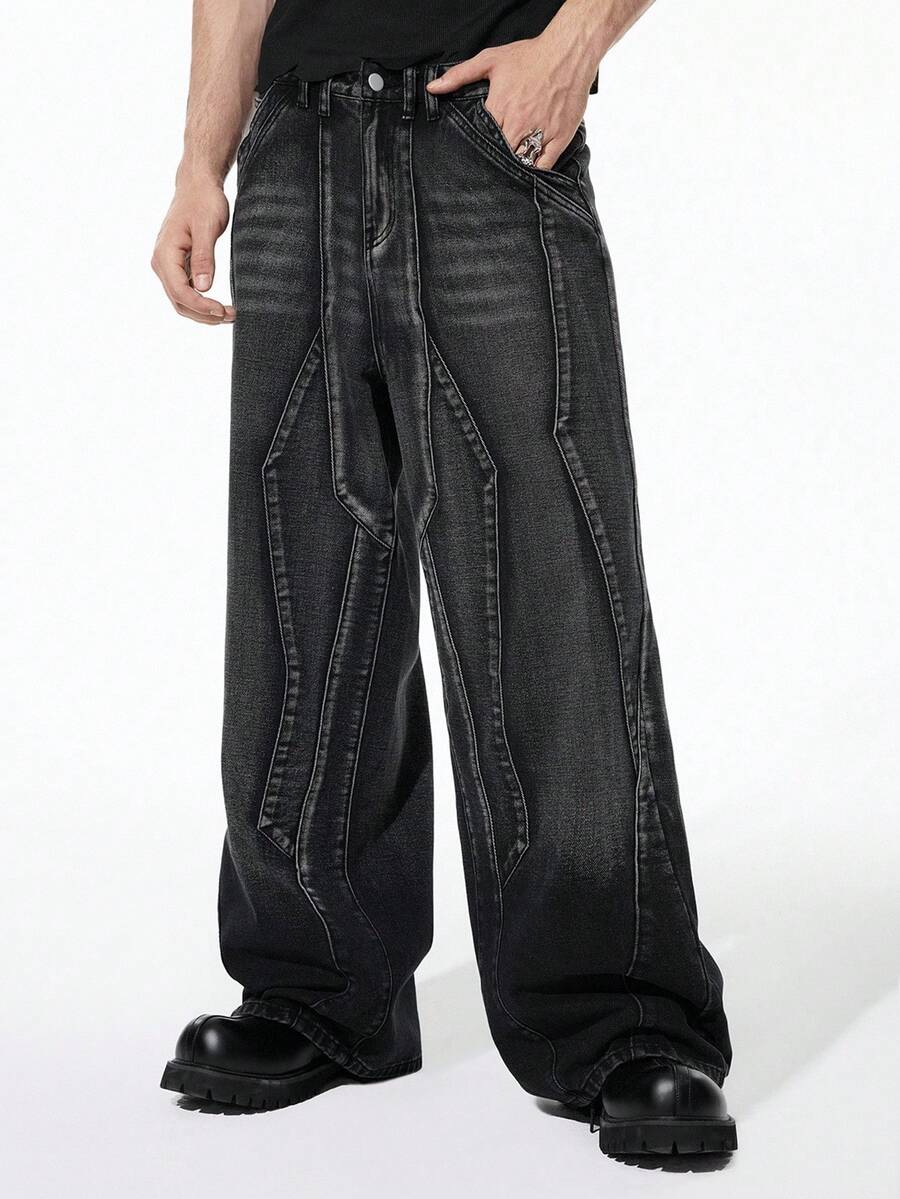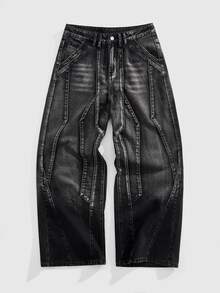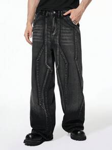 Street Life Jeans casuales y versátiles de pierna recta y ancha con bolsillos con botones para hombres