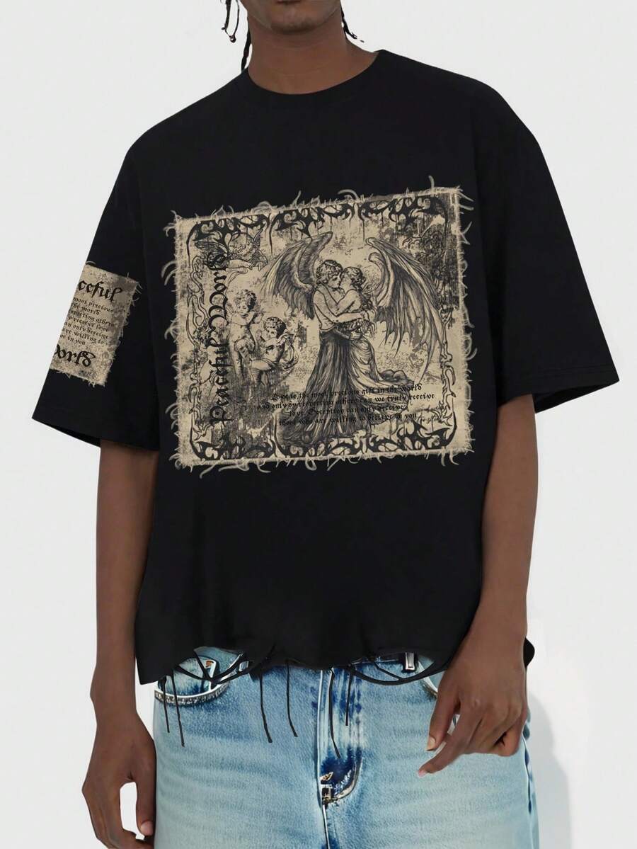 Goth Camiseta informal de manga corta de verano para hombres con estampado de ángel de marca de moda