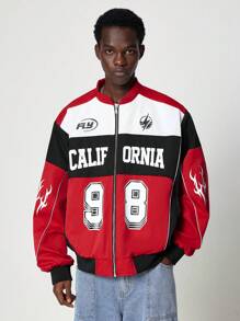 Street Life Chaqueta de bloque de color con estampado de letras y carreras, otoño