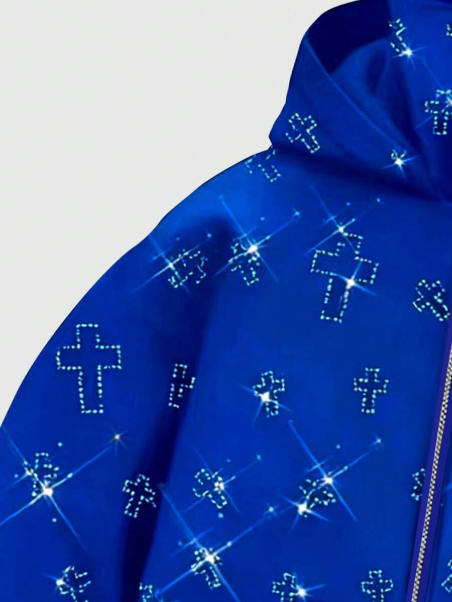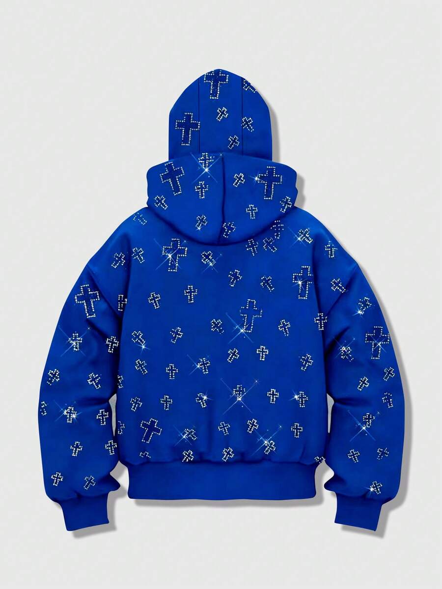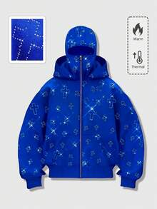 Street Life Sudadera con capucha con bolsillos y adornos de strass con cierre de cremallera, sudadera con capucha de moda para hombres