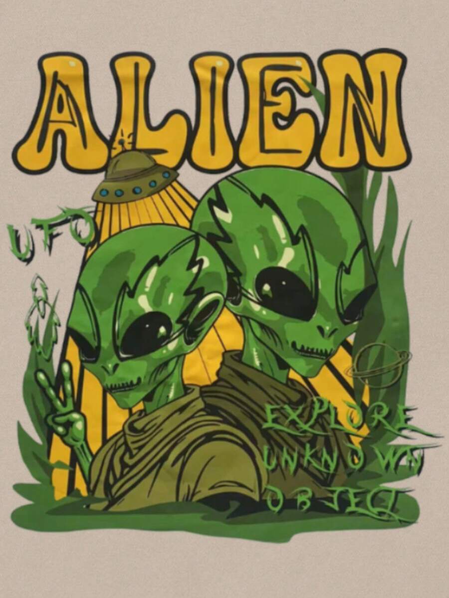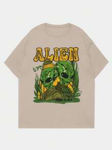 Street Life Hombres Camiseta con estampado de extraterrestre & de letra
