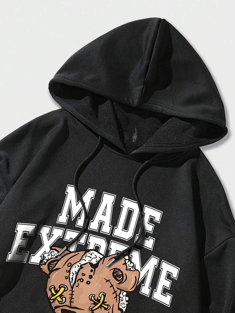 Street Life Hombres Capucha con estampado de oso y letra con cordón