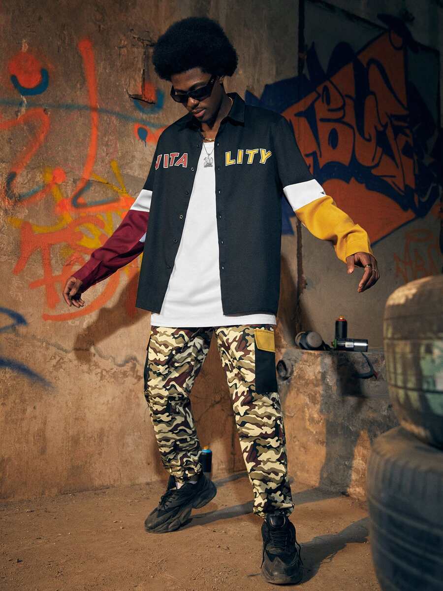 Street Life Hombres Pantalones de camuflaje con bolsillo con solapa