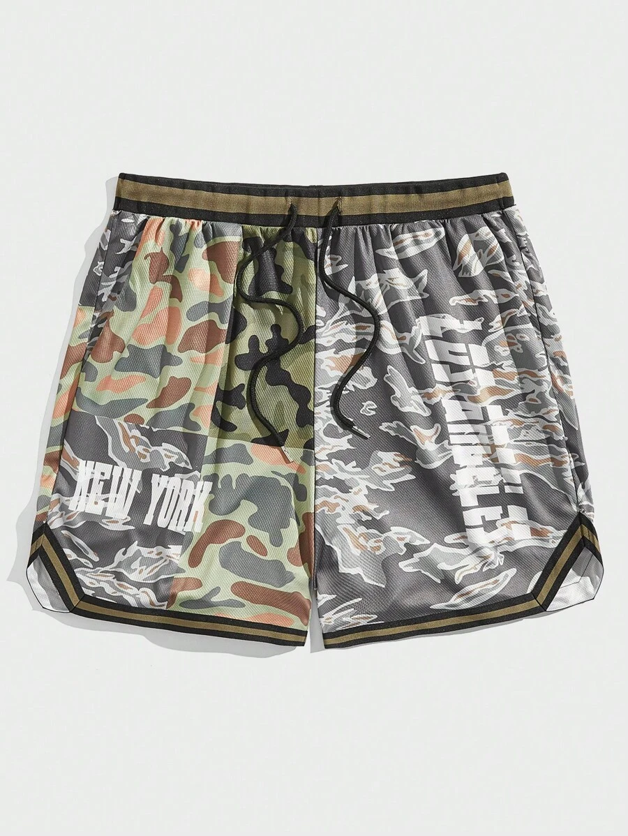 Street Life Hombres Shorts con cordón de camuflaje con estampado de letra