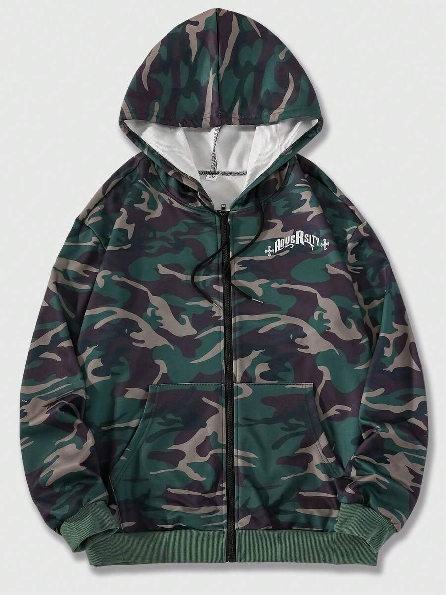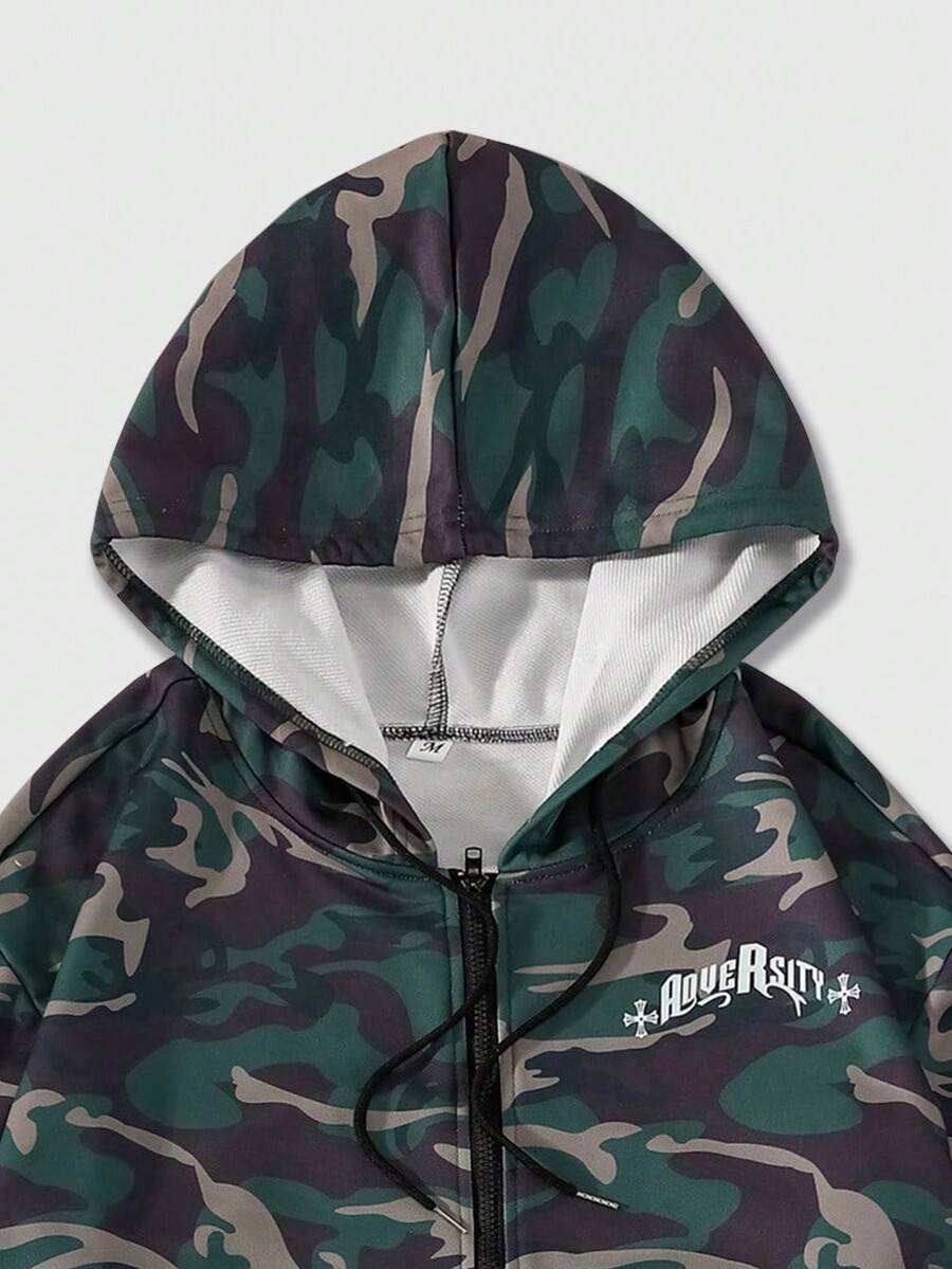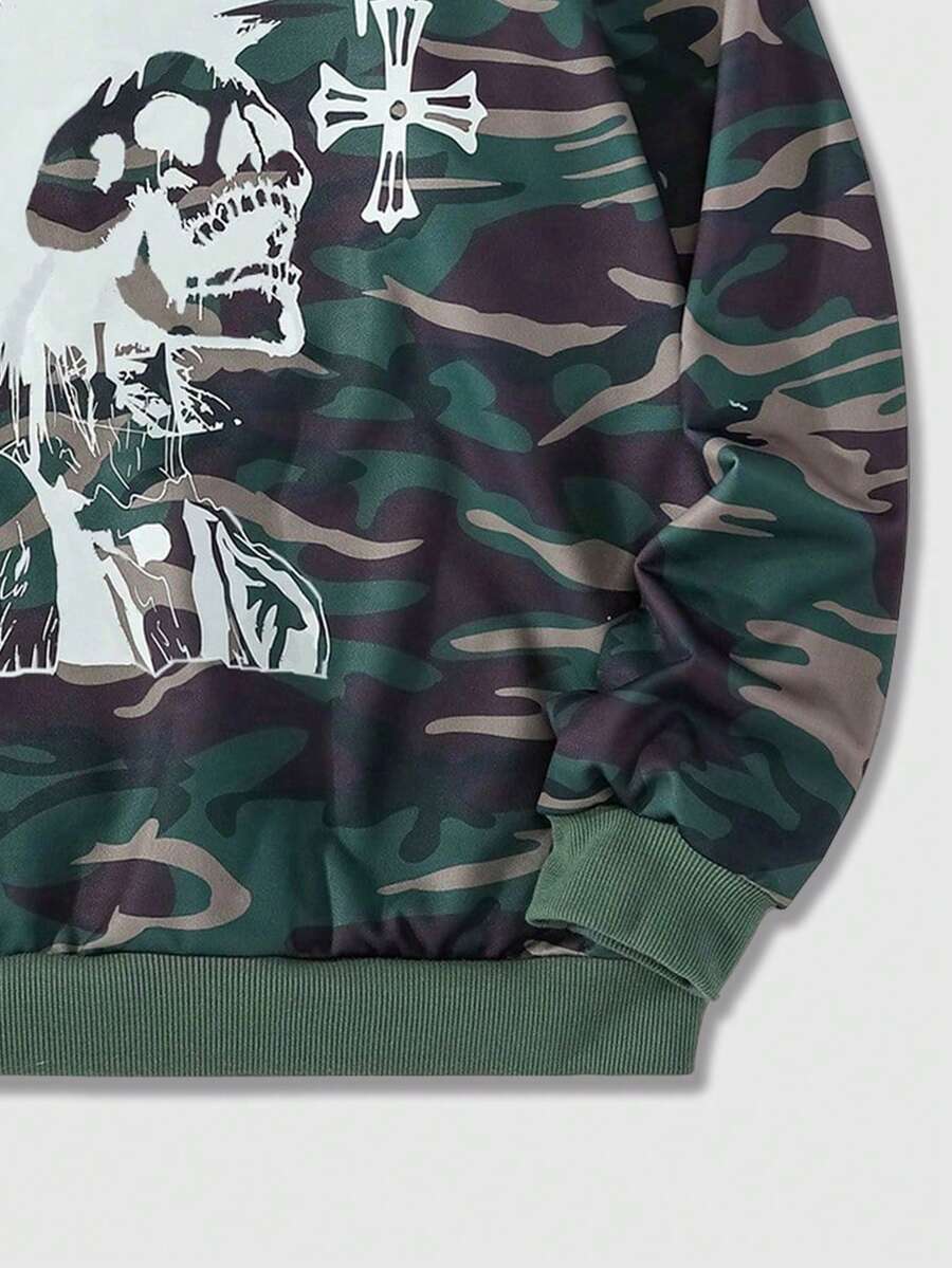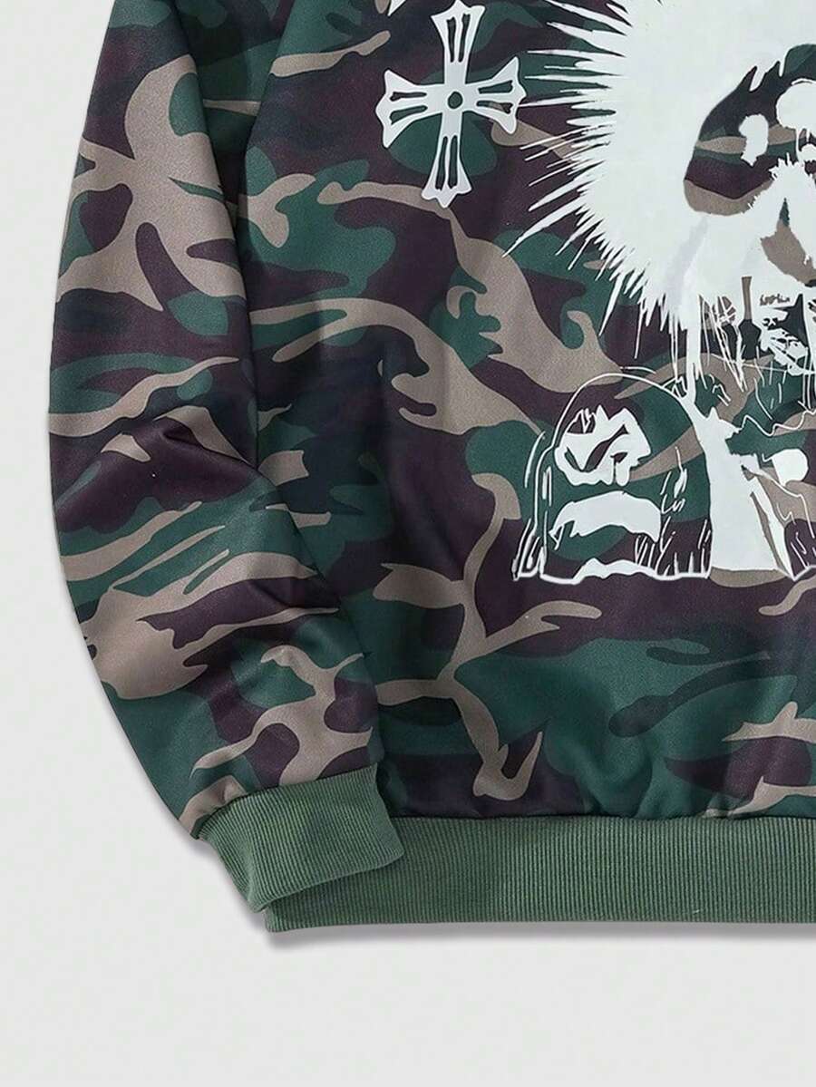 Street Life Hombres Capucha de camuflaje con letra & estampado de cráneo con bolsillo de canguro con cordón