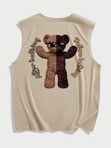 Street Life Hombres Top tank algodón con estampado de oso y letra