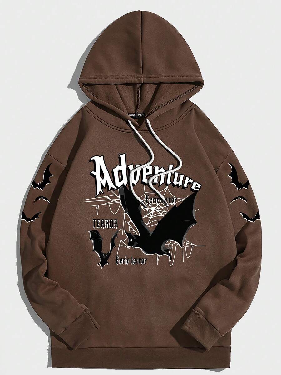 Street Life Hombre Letra Y Murciélago Impresión Capucha Térmica Con Cordón