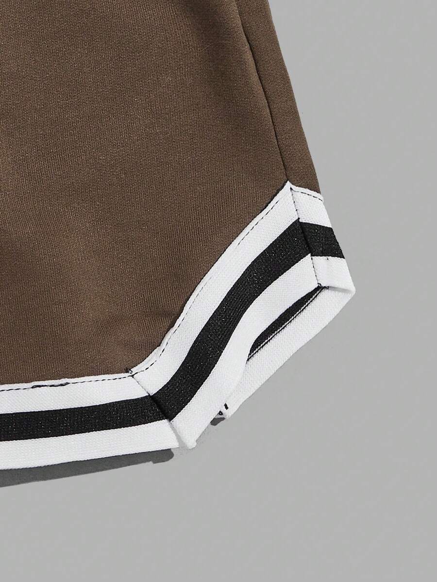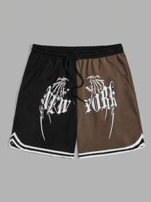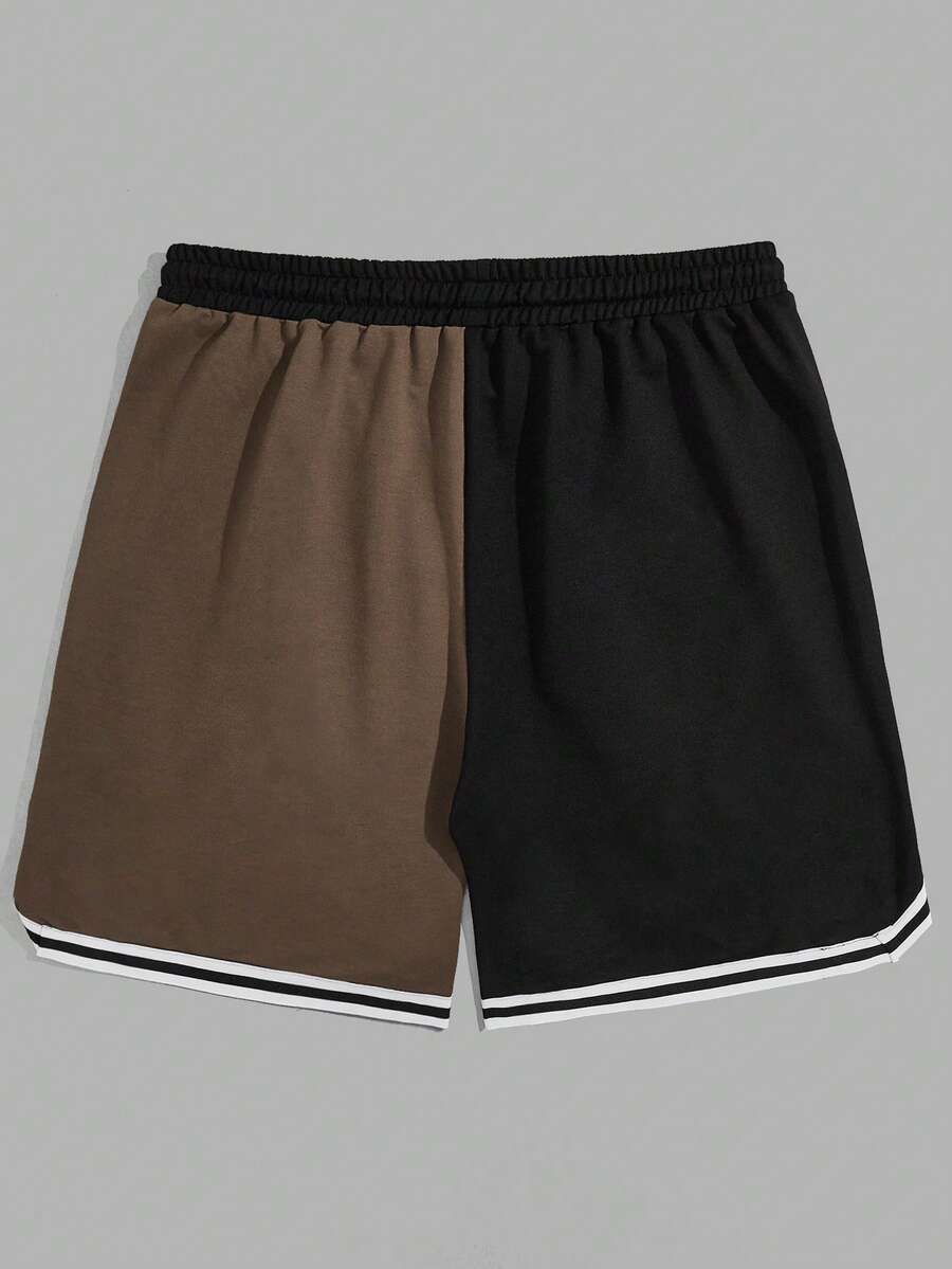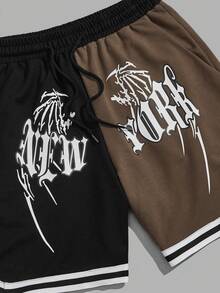 Street Life Hombres Shorts con estampado de letra de dos tonos ribete de rayas de cintura con cordón