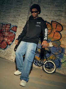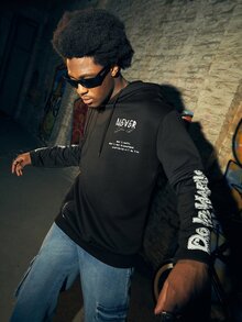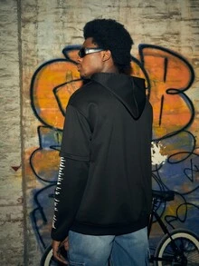Street Life Hombres Capucha con cremallera con estampado de letra