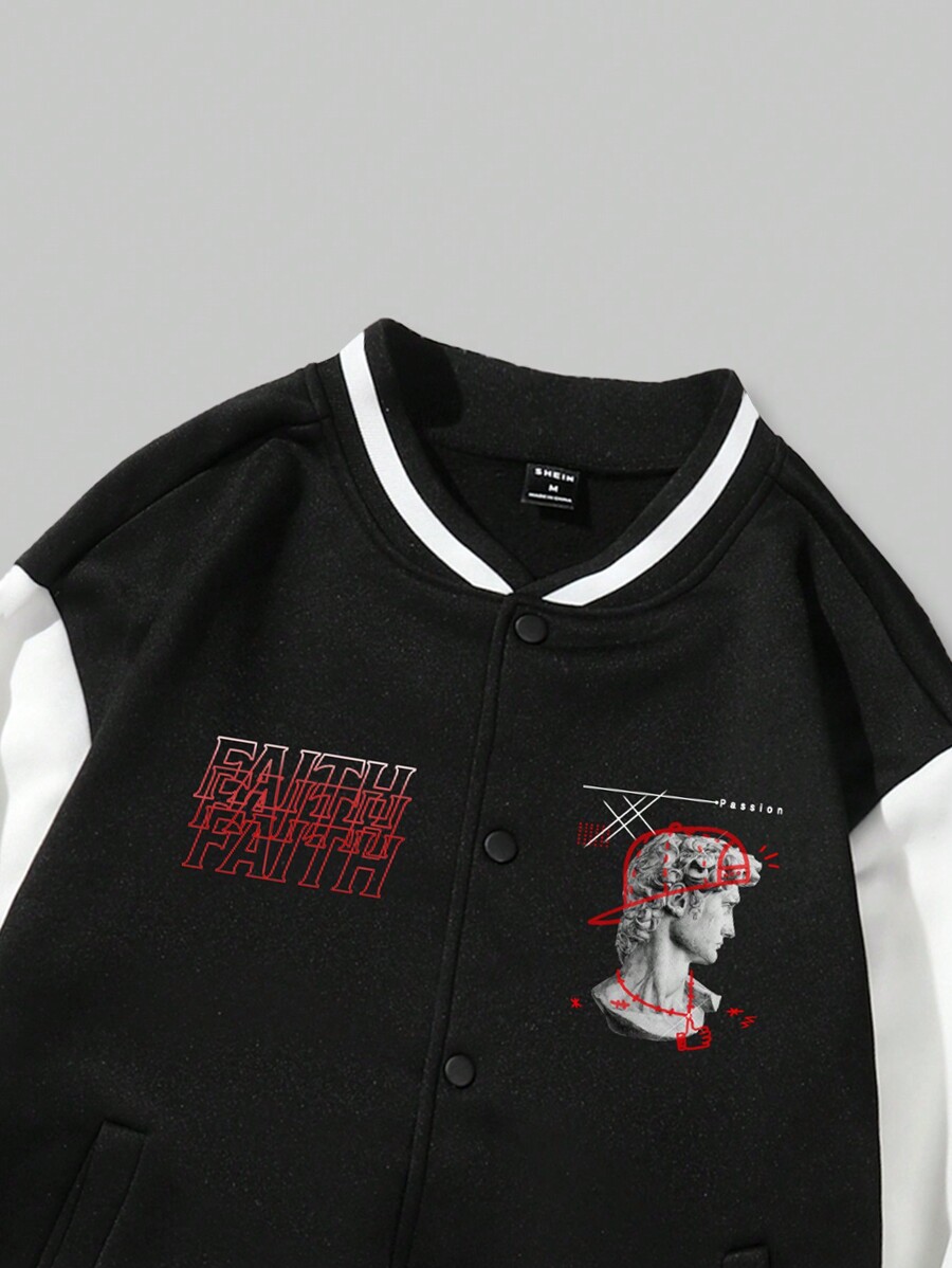 Street Life Hombres Cazadora de universidad con parche de letra ribete de rayas de hombros caídos