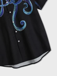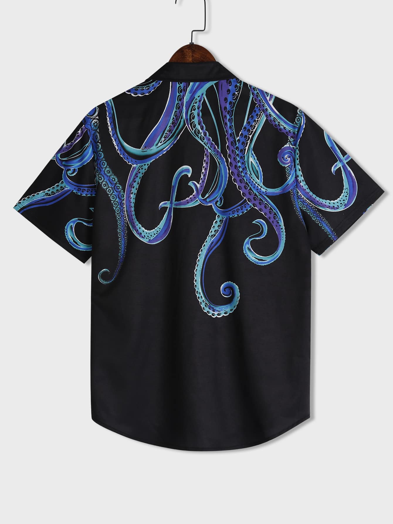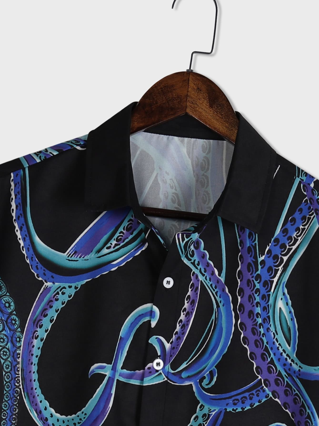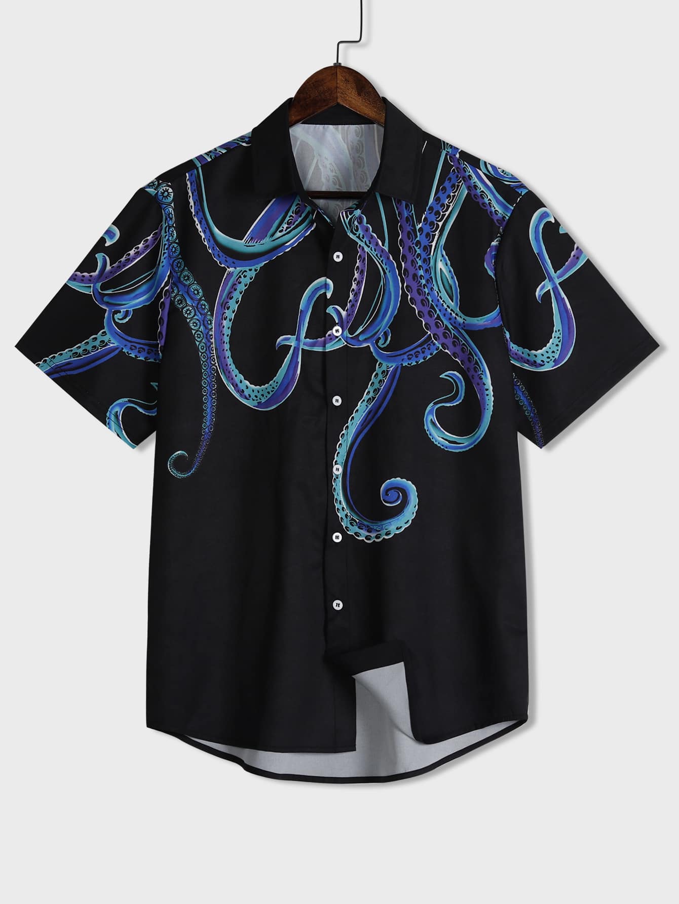 Street Life Hombres Camisa de pulpo con estampado de mano