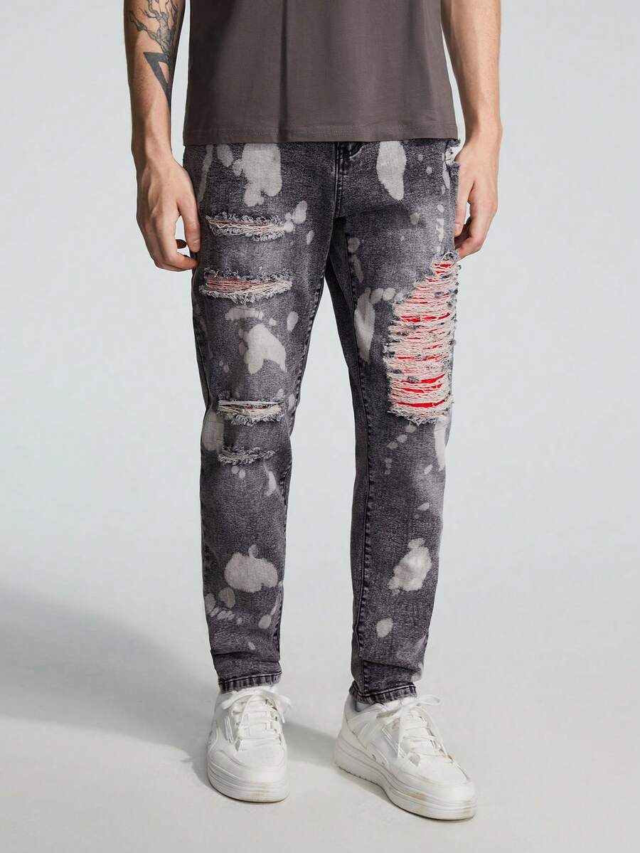 Street Life Hombres Jeans desgarro crudo con estampado de tinte de salpicadura