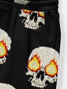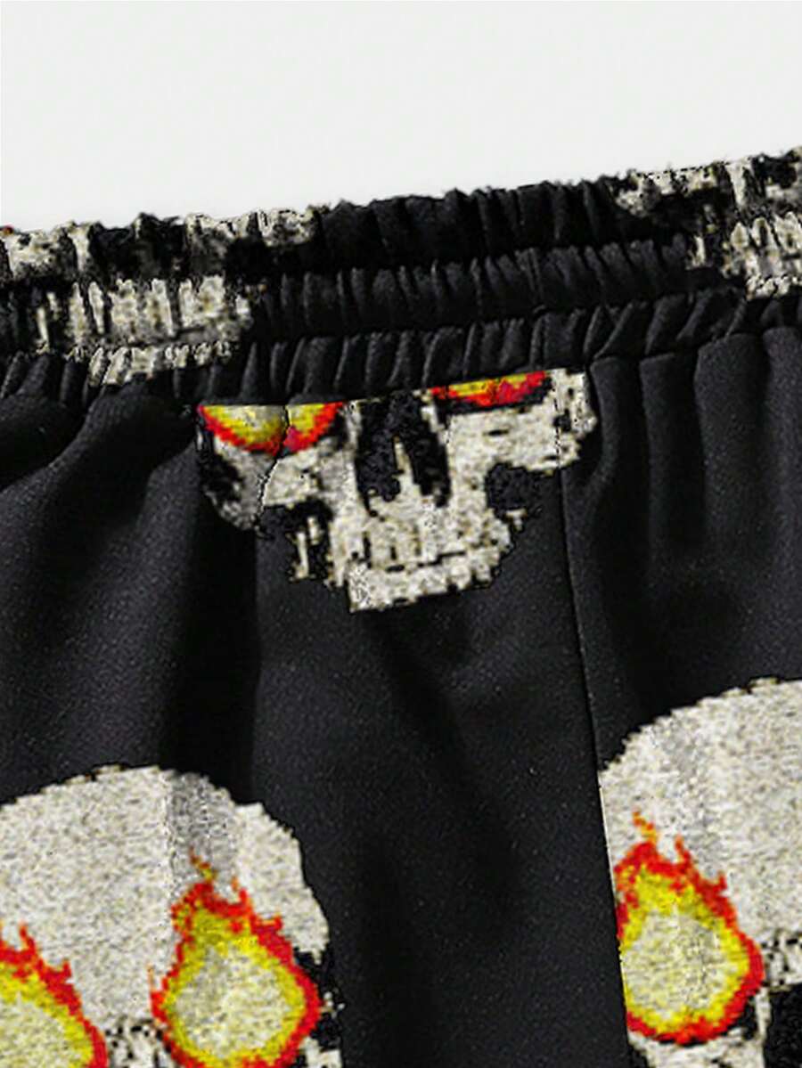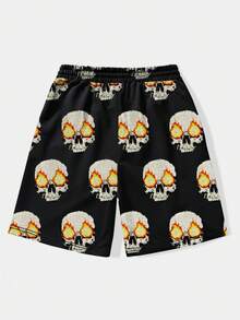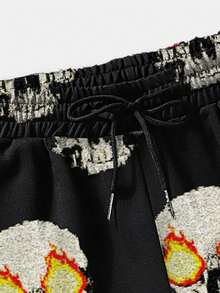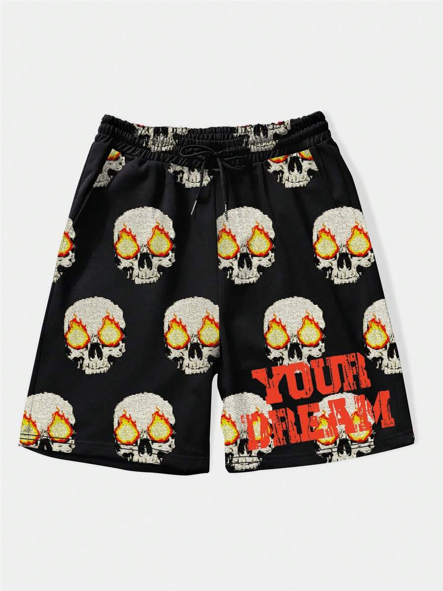Street Life Hombres Shorts con estampado de cráneo y letra de cintura con cordón