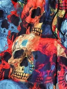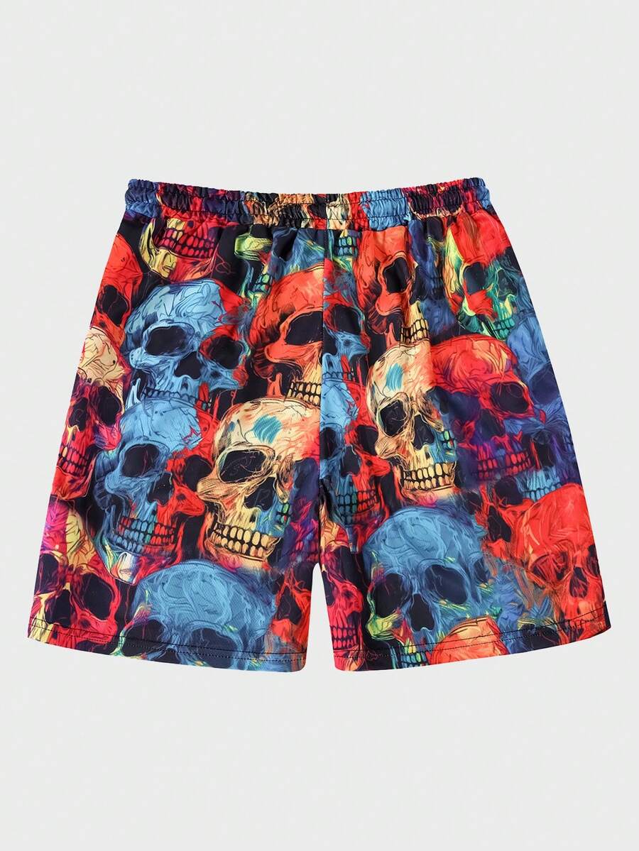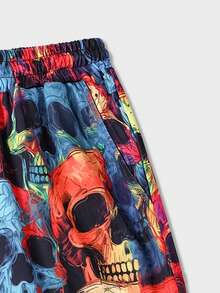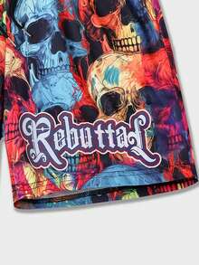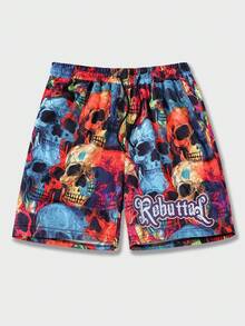 Street Life Hombres Shorts con estampado de cráneo y letra de cintura con cordón