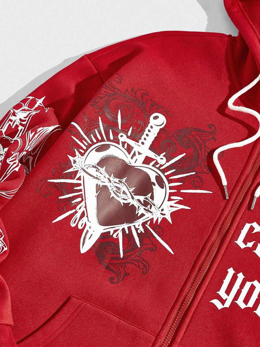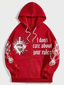 Street Life Hombre Sudadera Con Capucha Térmica Forrada Con Cierre De Cremallera, Cordón Y Esloganes Gráficos