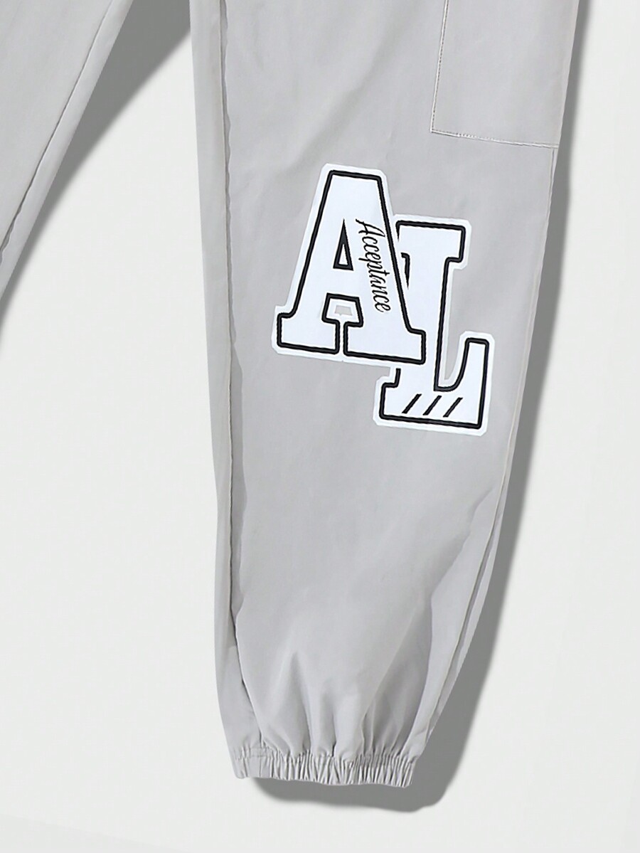 Street Life Hombres Pantalones cargo con estampado de estrella y slogan con bolsillo lateral con solapa de cintura con cordón