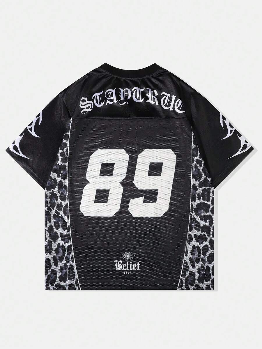 Street Life Camiseta de baloncesto de manga corta con estampado de leopardo y diseño streetwear, de tela de malla y brillante, para verano
