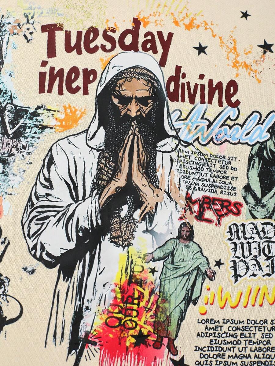 Street Life Camiseta de hombre de corte holgado, hombros caídos y estampada