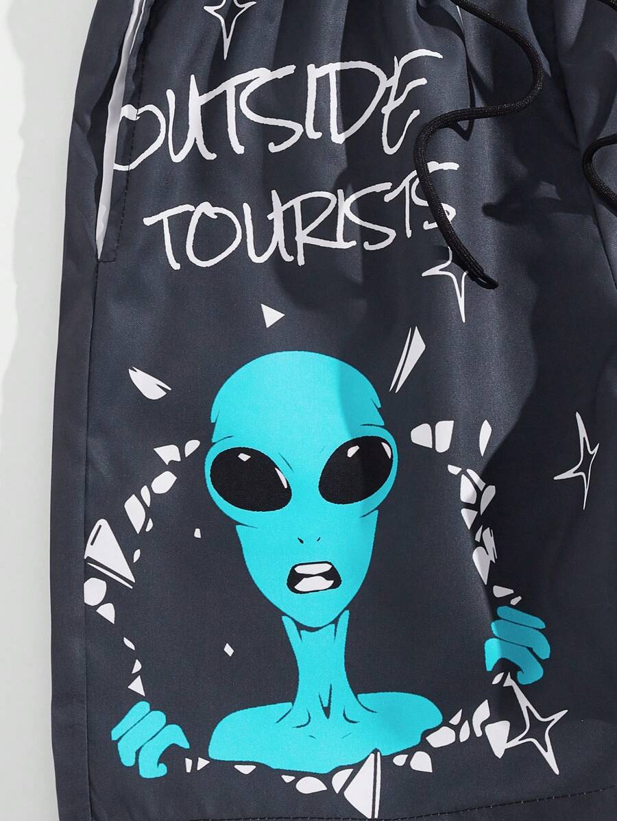 Street Life Pantalones Cortos Para Hombres Con Cintura Elástica Y Cordón Con Gráfico De Letras Y Alienígena