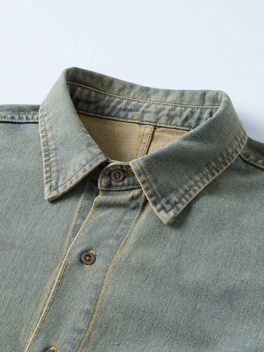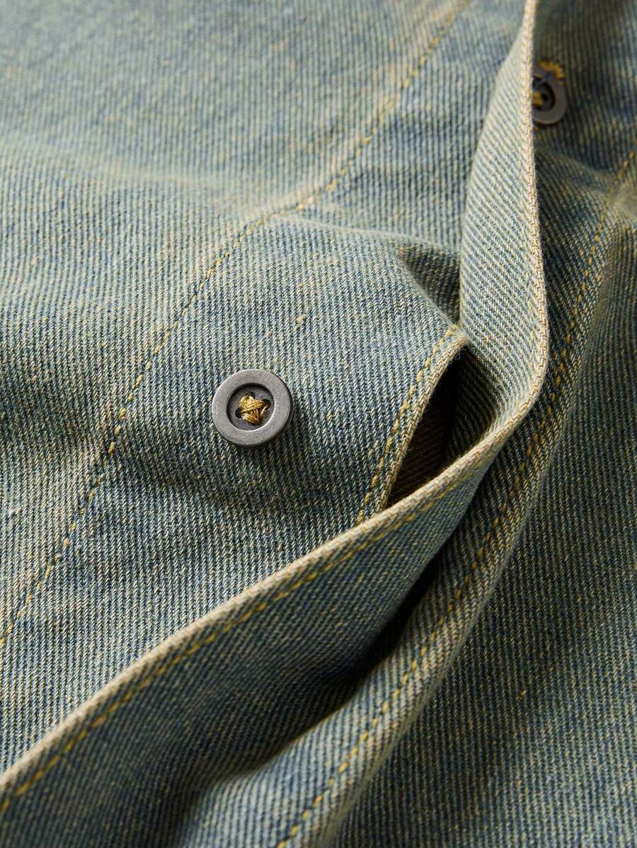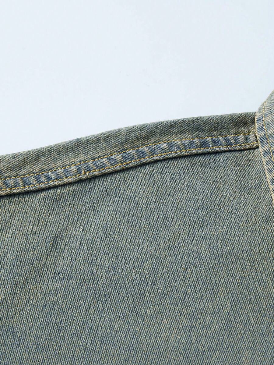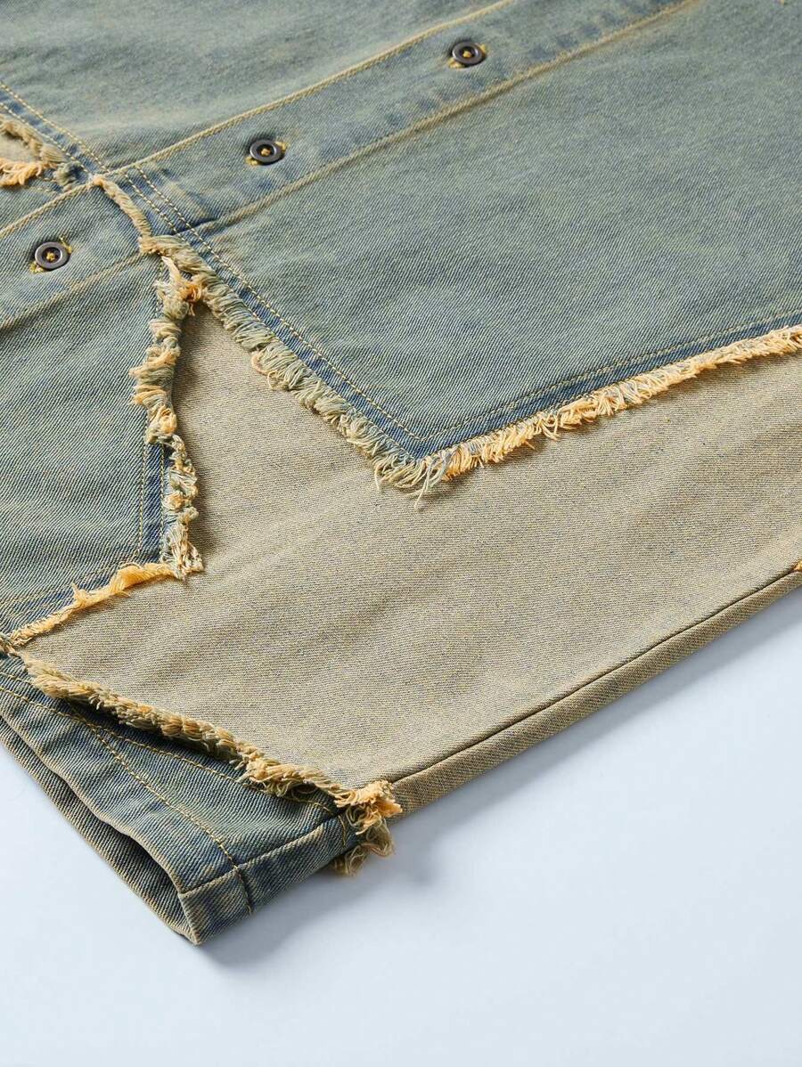 Street Life Camisa vaquera de verano con bloqueo de color y ribete crudo en forma de estrella para hombre, escuela