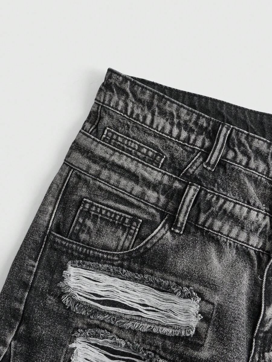 Street Life Pantalones cortos vaqueros de cintura alta desgastados sencillos para hombres, escuela