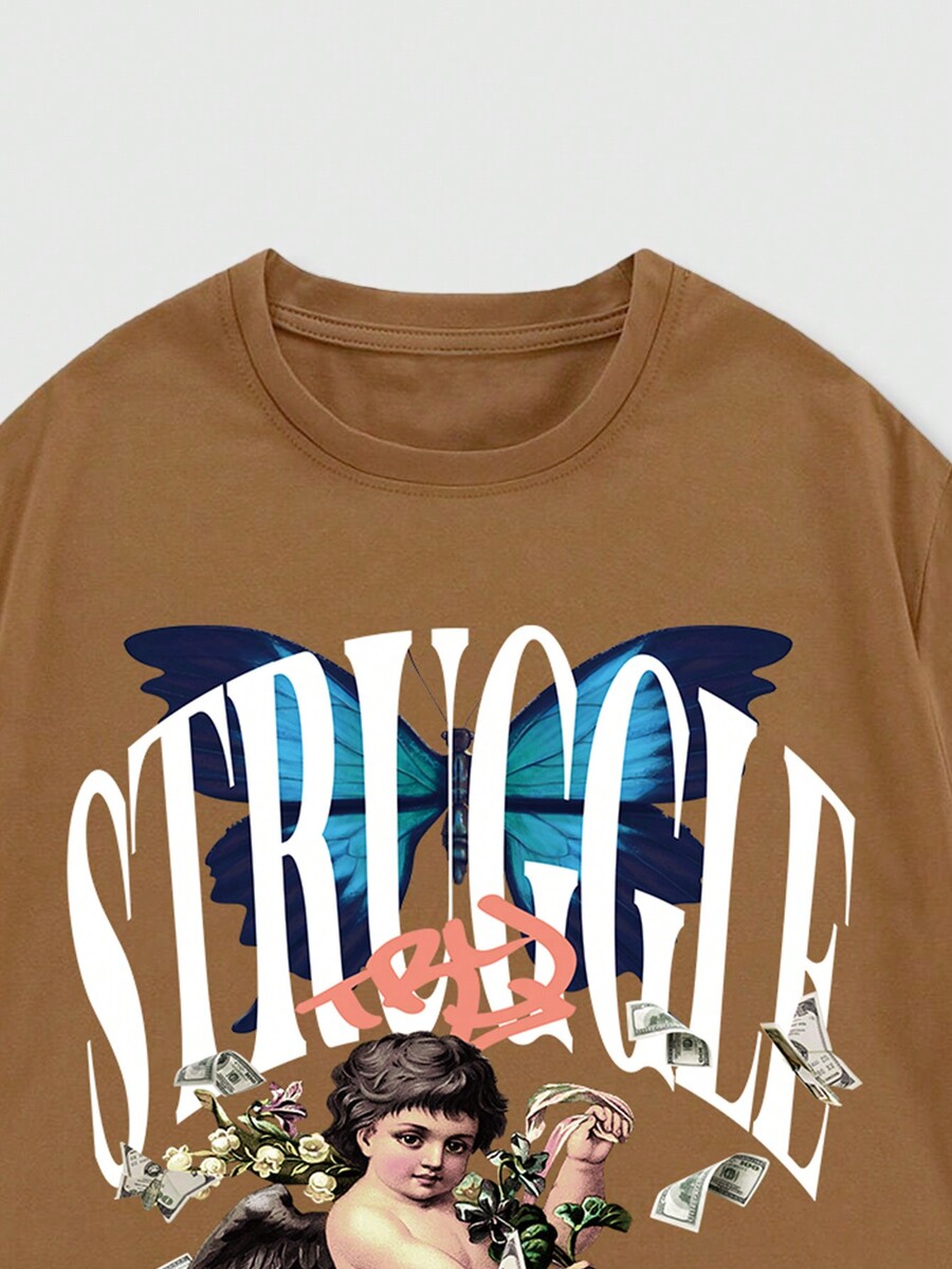 Street Life Camiseta Gráfica Para Hombre Con Figura Y Letra