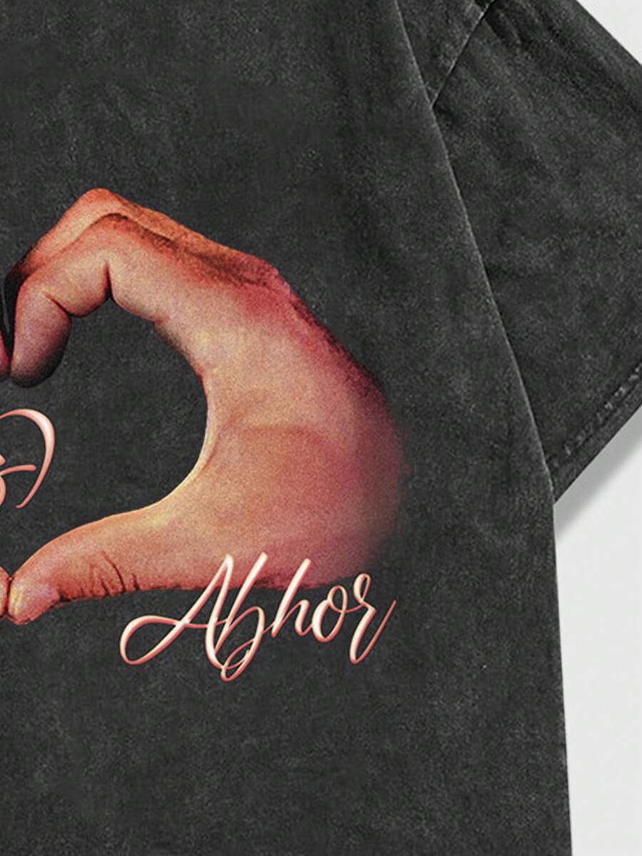Street Life Camiseta de manga corta impresa con corazones con arroz frito con huevo y tomate para hombre, adecuada para uso diario en primavera y verano