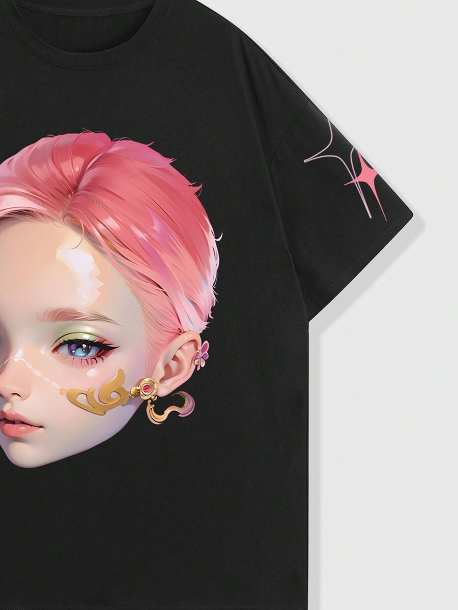 Street Life Camiseta de manga corta con gráfico de retrato de graffiti para hombres