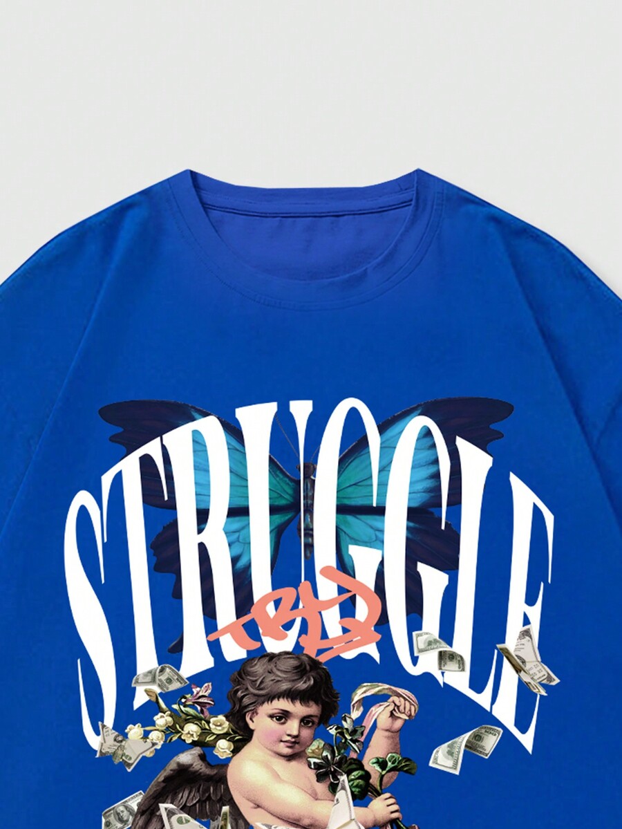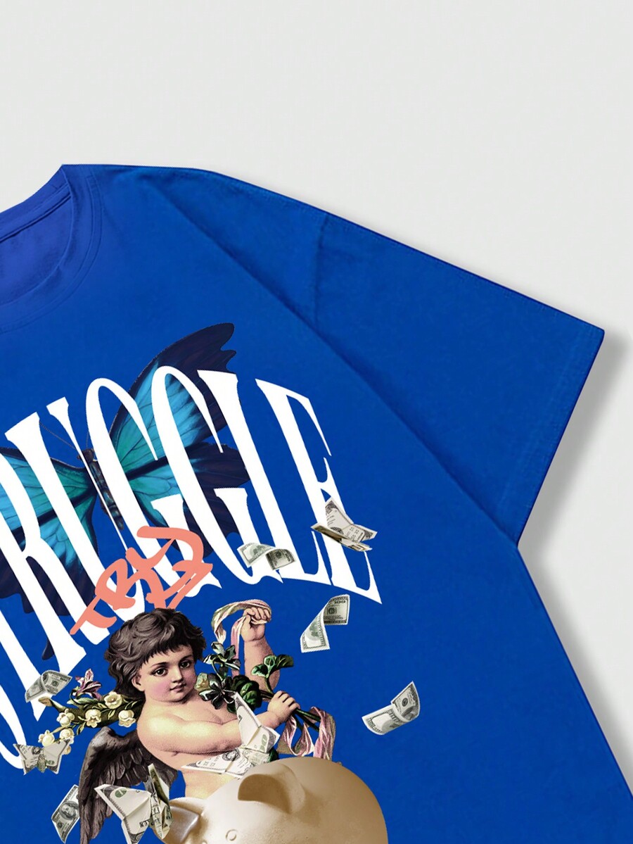 Street Life Camiseta Gráfica Para Hombre Con Letras Y Ángeles