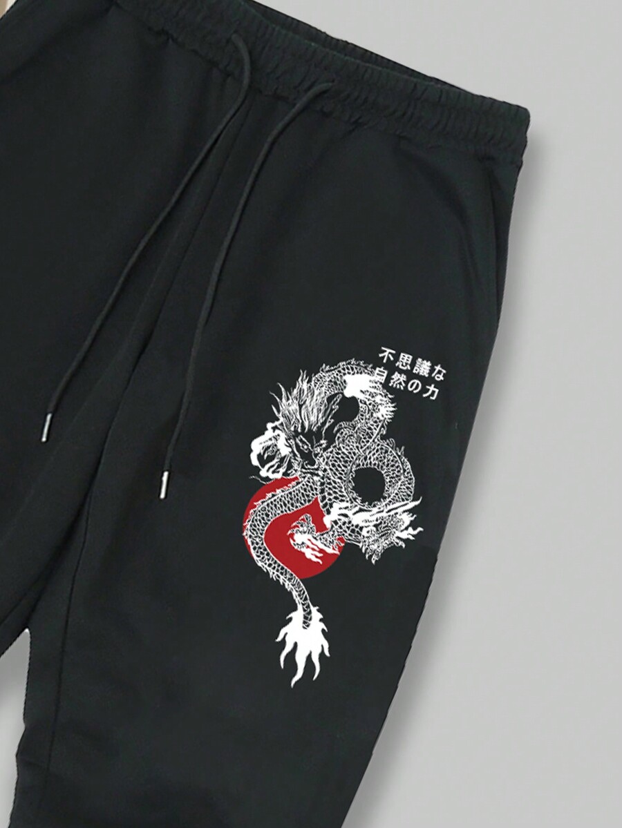 Street Life Hombre Carta Chino Dragón Gráfico Con Capucha Y Pantalones De Chándal Con Cordón De Cintura