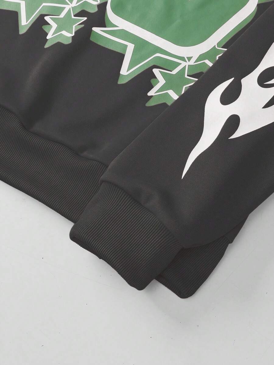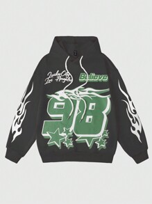 Street Life Jersey con capucha y cordón de hombre con estampado de letras y llamas, estilo vintage de calle, otoño