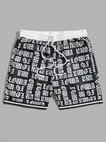 Street Life Pantalones cortos de baloncesto escolares con cordón en la cintura y gráfico de letras para hombres