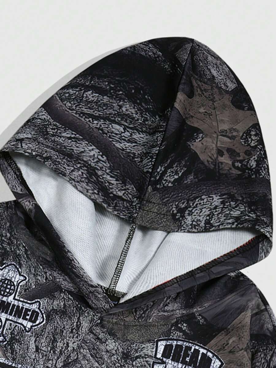 Street Life Sudadera con capucha con gráfico de letras para hombres, escolar