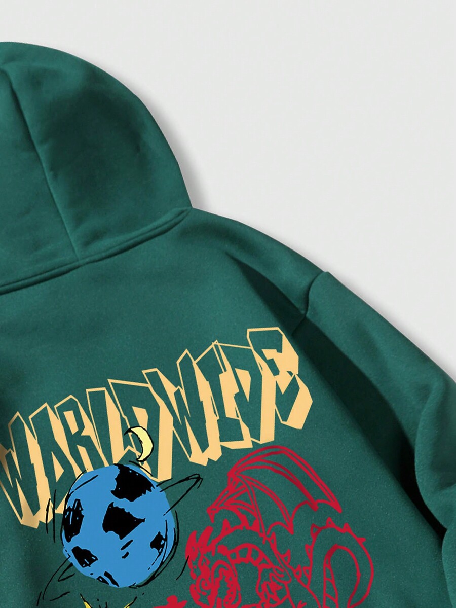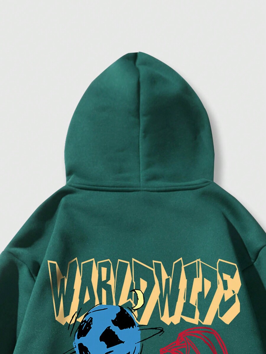Street Life Hoodie Masculino Térmico Con Letra Y Bolsillo De Canguro Con Cordón