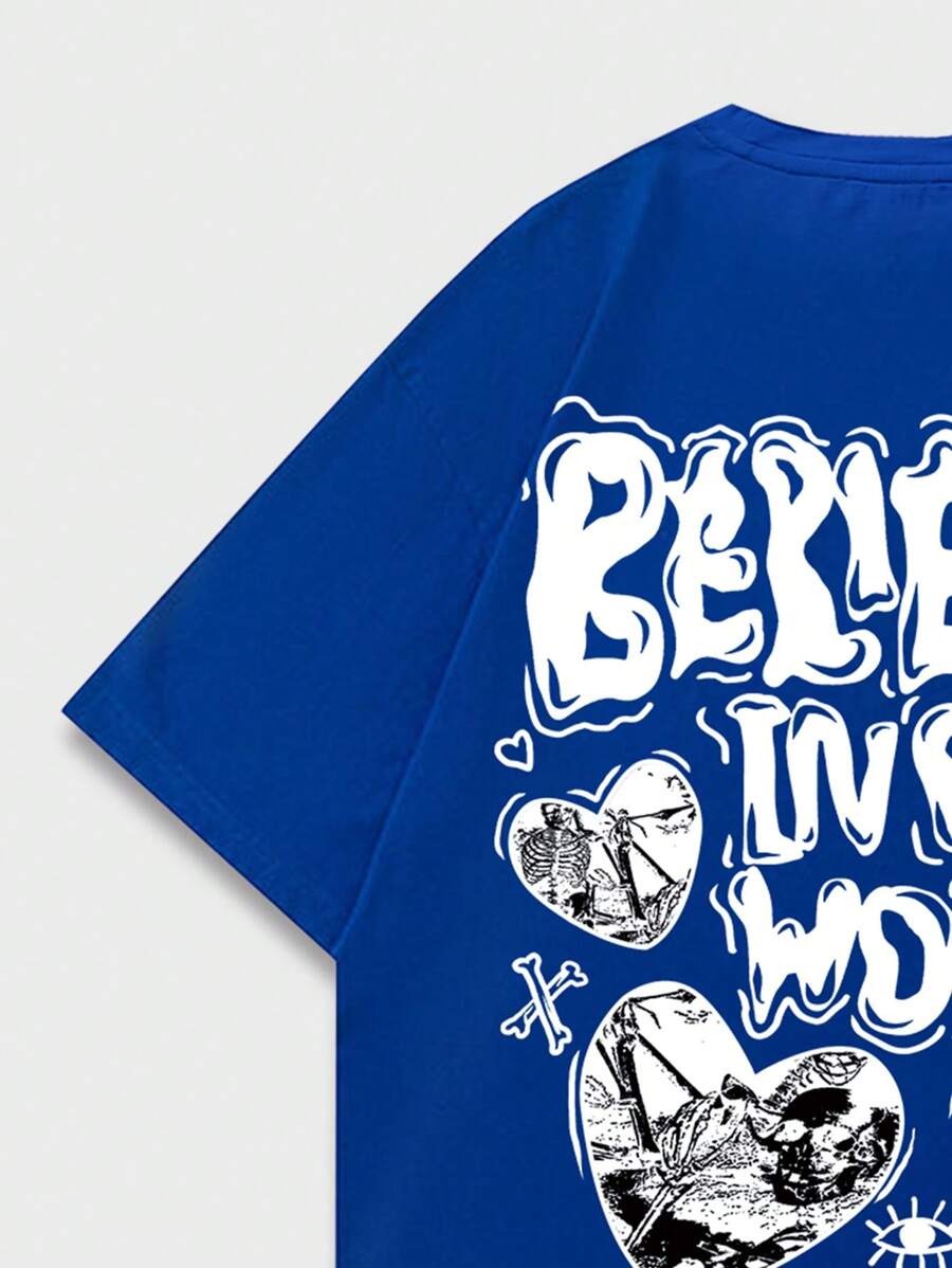 Street Life Camiseta de hombro caído con gráfico de eslogan, estilo escolar y de los años 2000