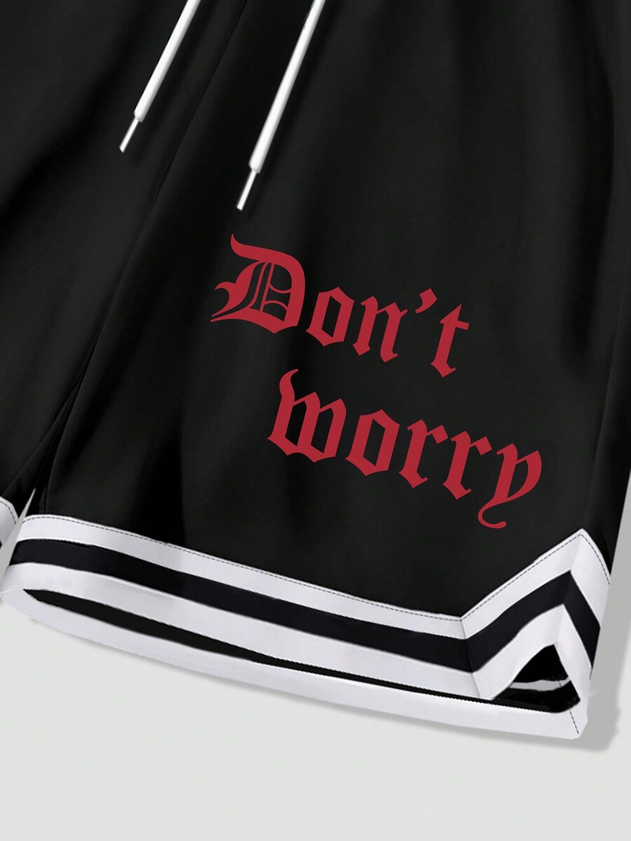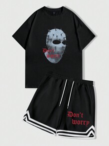 Street Life Conjunto de dos piezas de camiseta de manga corta con estampado de letra y pantalones cortos casuales de verano para hombres