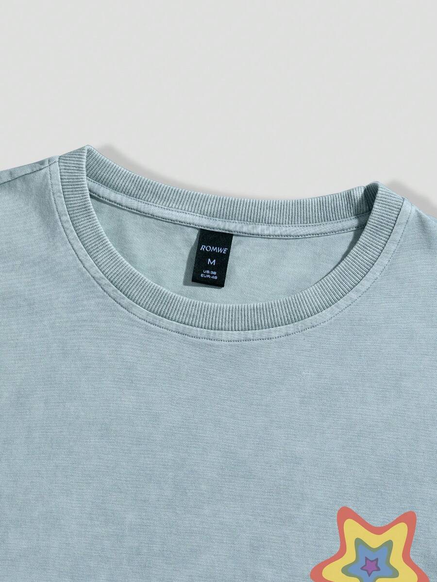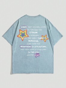 Street Life Camiseta veraniega para hombre con eslogan y estampado de estrella de cinco puntas impreso de cuello redondo casual de manga corta estilo Y2k