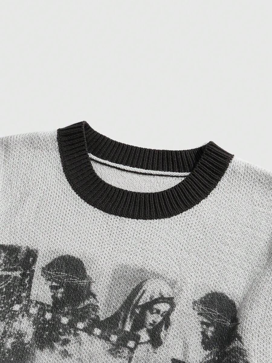 Street Life Suéter de cuello redondo holgado con estampado vintage para hombres