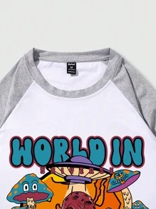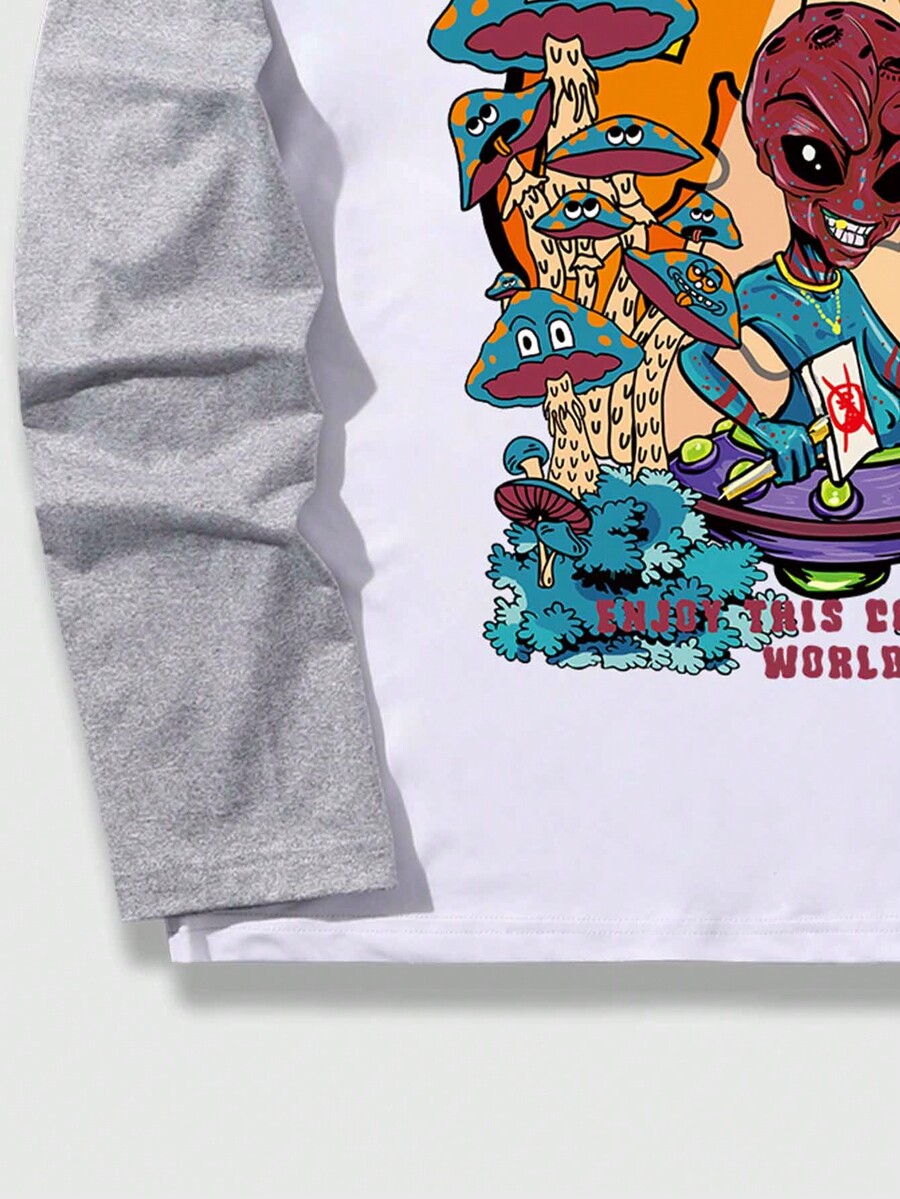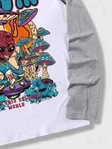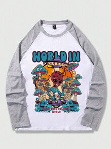Street Life Camiseta De Manga Larga Raglán Con Estampado De Letras Y Alienígenas Para Hombre