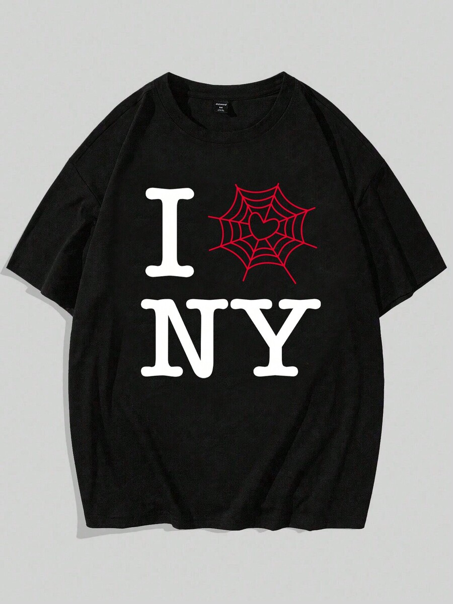 Street Life Camiseta De Manga Corta Para Hombre Con Impresión De Alfabeto Y Telaraña