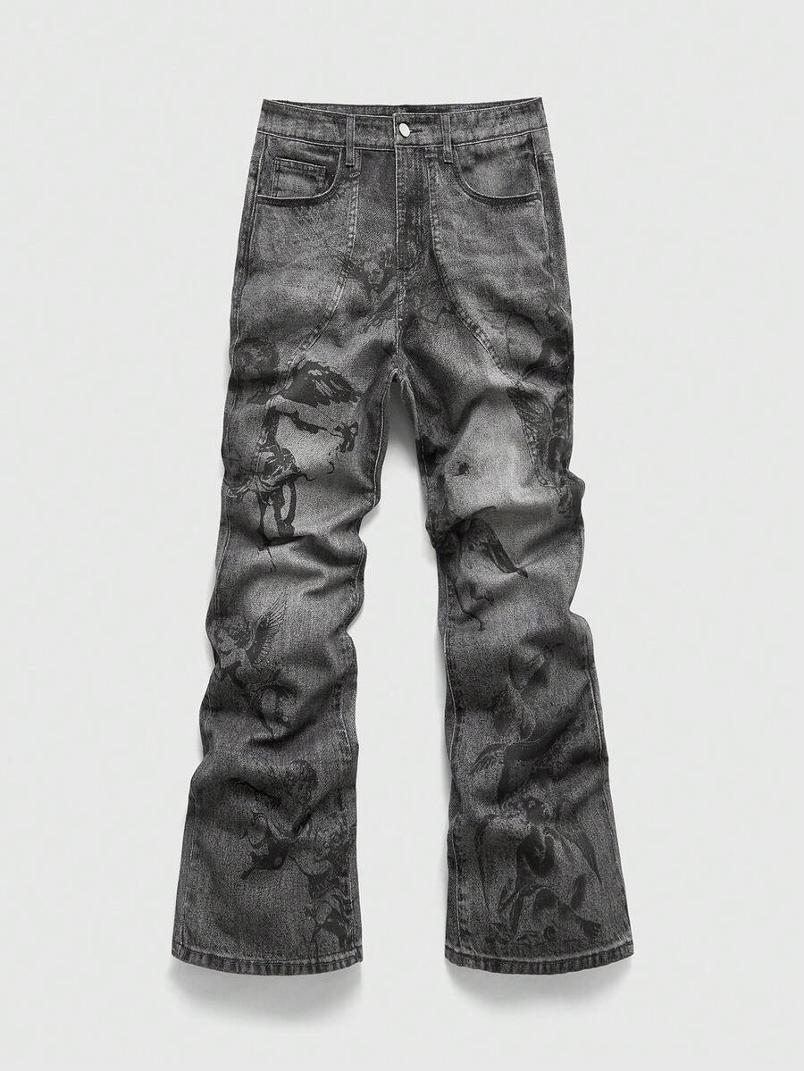 Street Life Jeans de pierna acampanada con estampado de ángel en el bolsillo para hombre