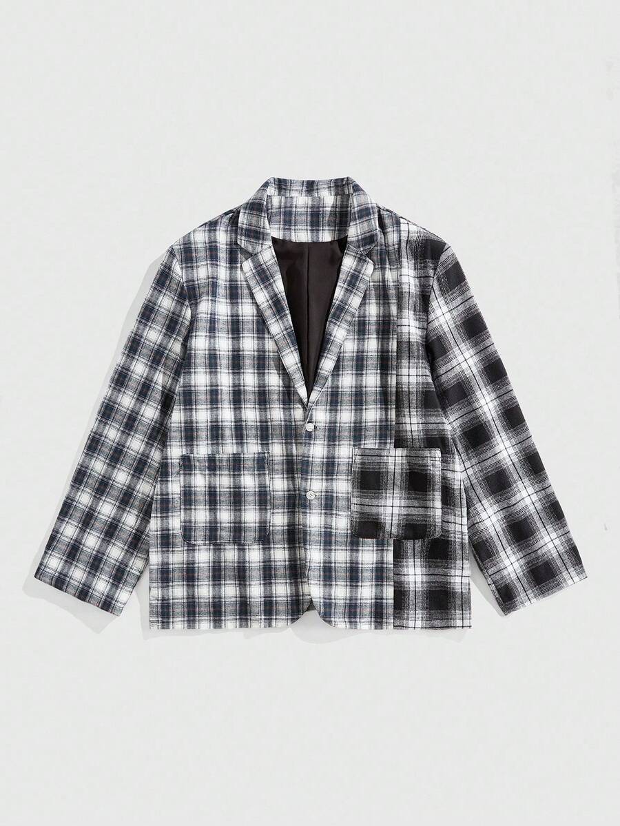Street Life Chaqueta casual/de negocios de manga larga con cuello de solapa a cuadros para hombre, otoño