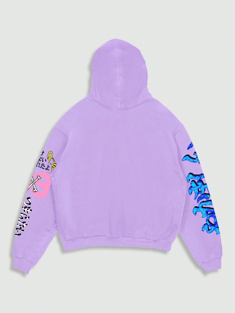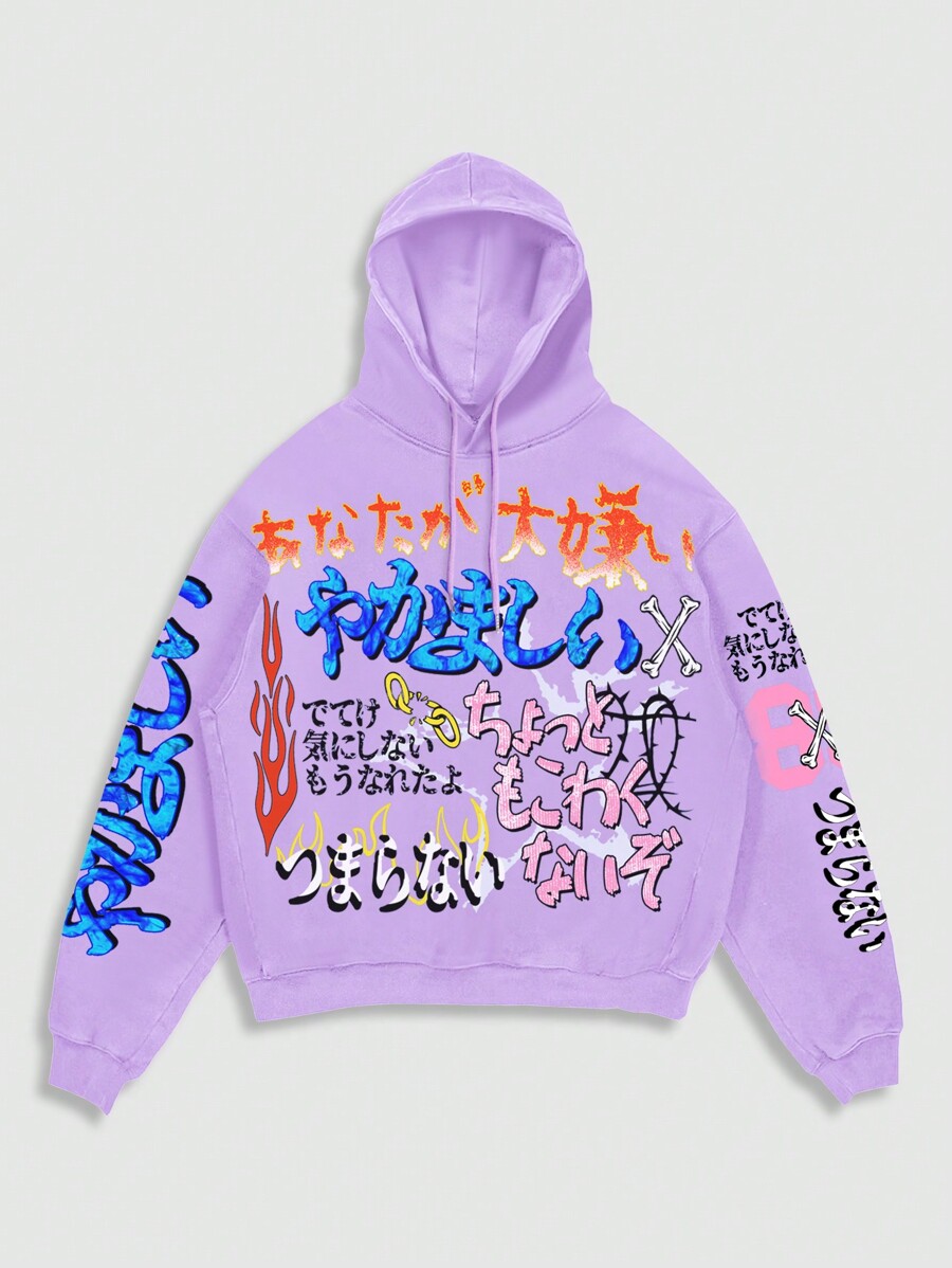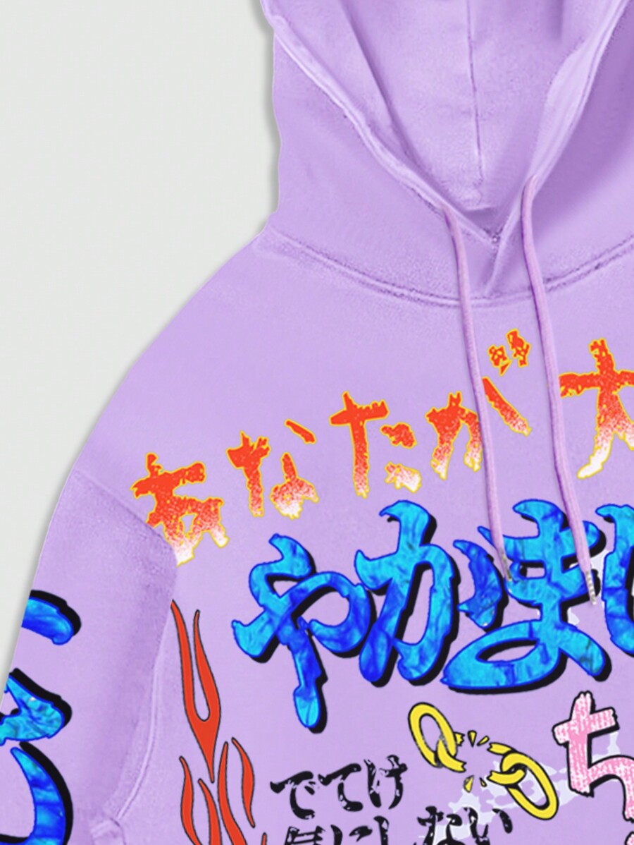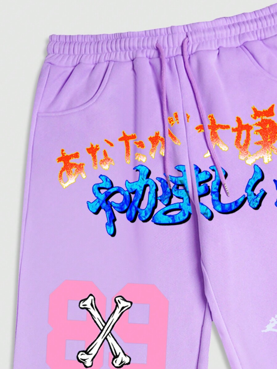 Street Life Conjunto deportivo casual de hombre con sudadera con capucha y pantalón de chándal con estampado de letra y llamas de otoño